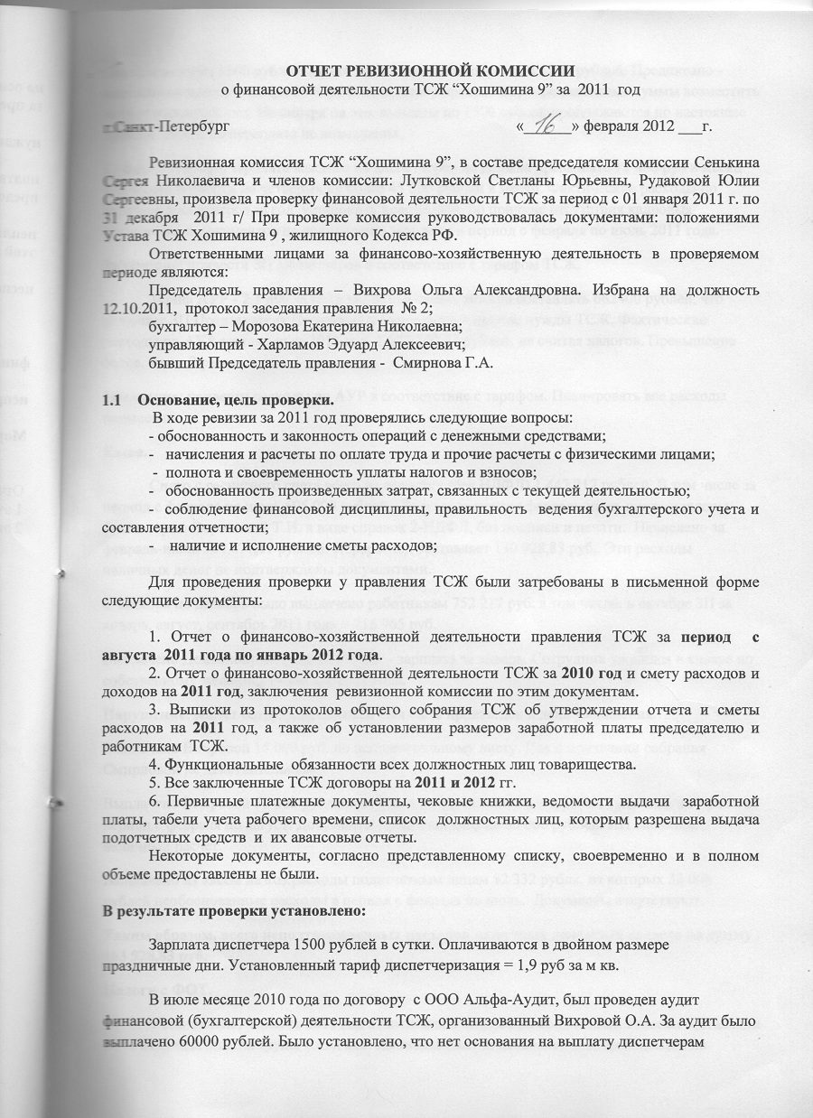 тсж протокол ревизионной комиссии